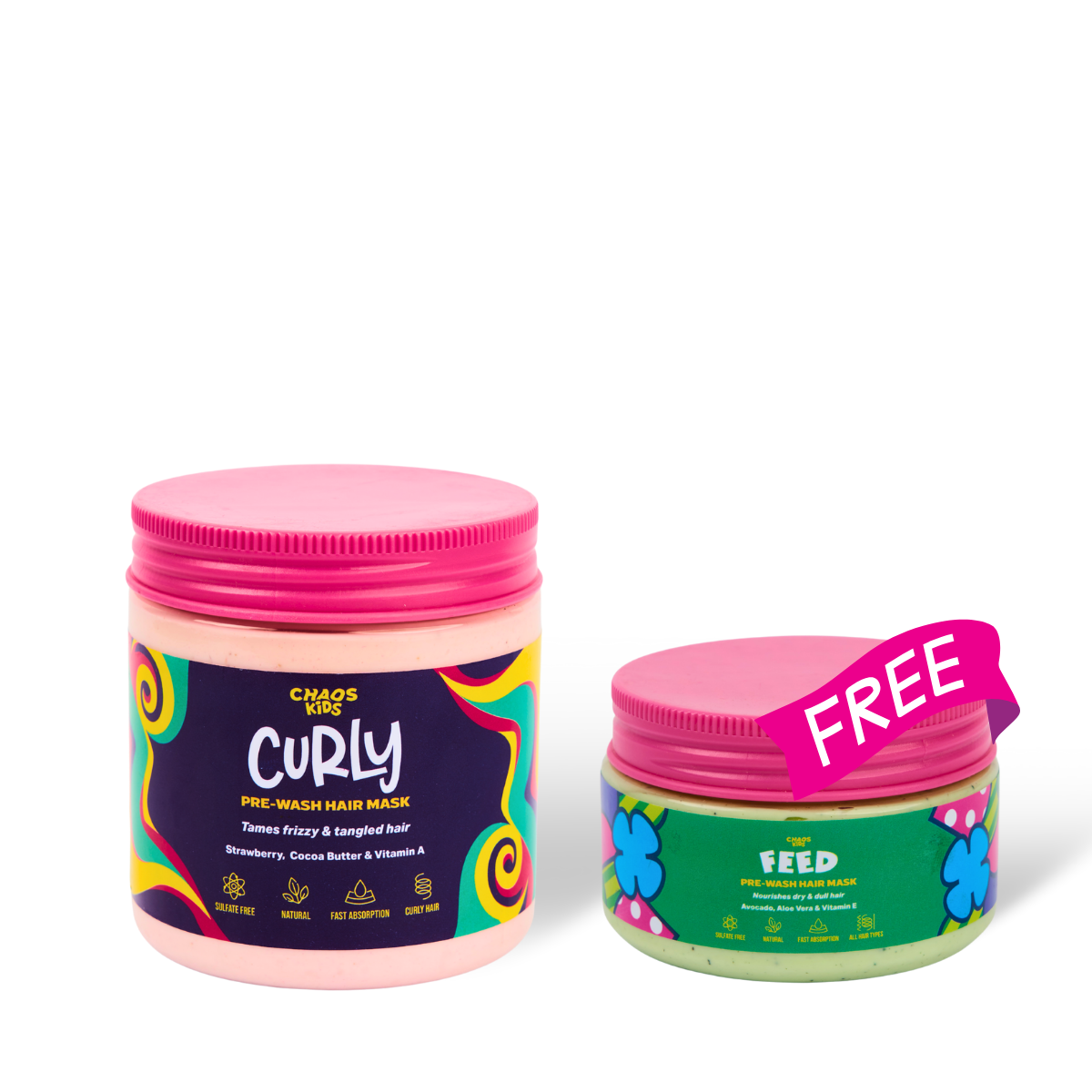 The Feed & Curly Duo unites Feed hair mask, enriched with aloe vera and avocado oil to nourish, densify, and add shine, with Curly hair mask, a cocoa butter, mango oil, and strawberry blend that moisturizes, detangles, and defines curls for easy, healthy hair care.