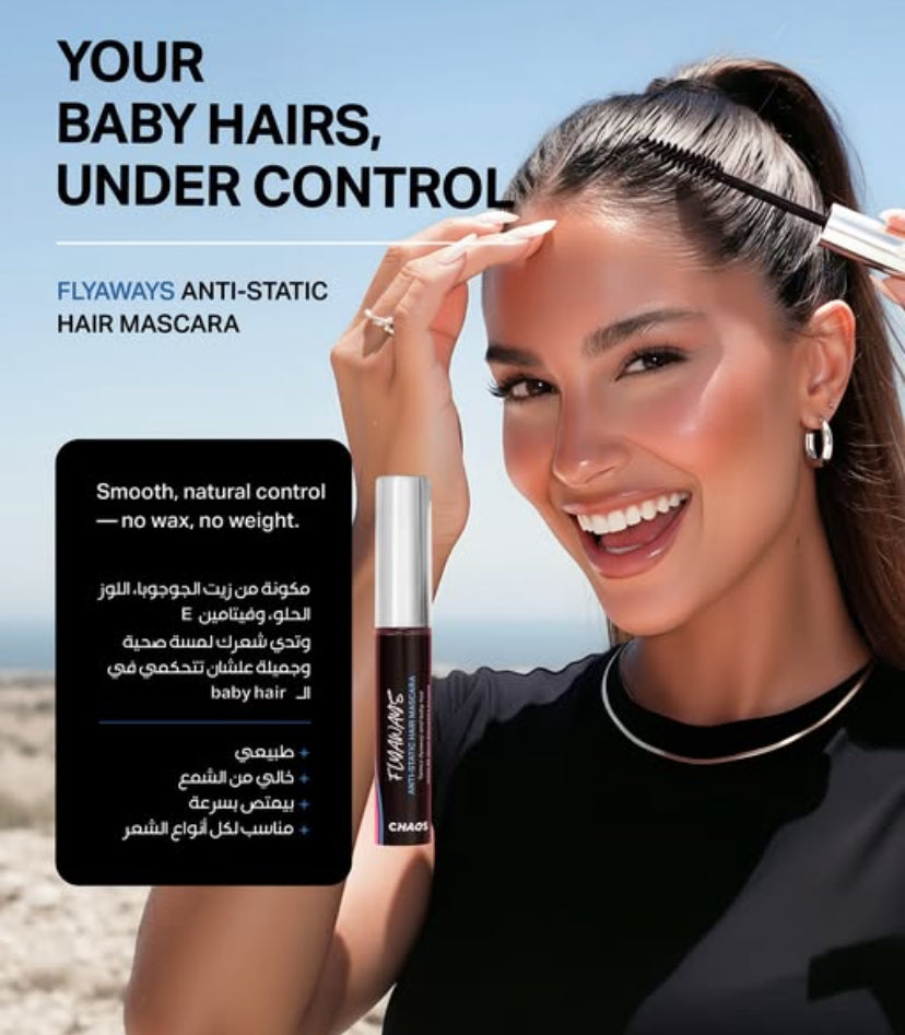 Keep every strand in place with Chaos Flyaways Anti-Static Hair Mascara — your everyday secret weapon for sleek, frizz-free hair.