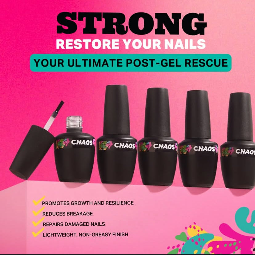 1- Apply a fair amount of CHAOS Strong to your nails and the surrounding area (cuticles).